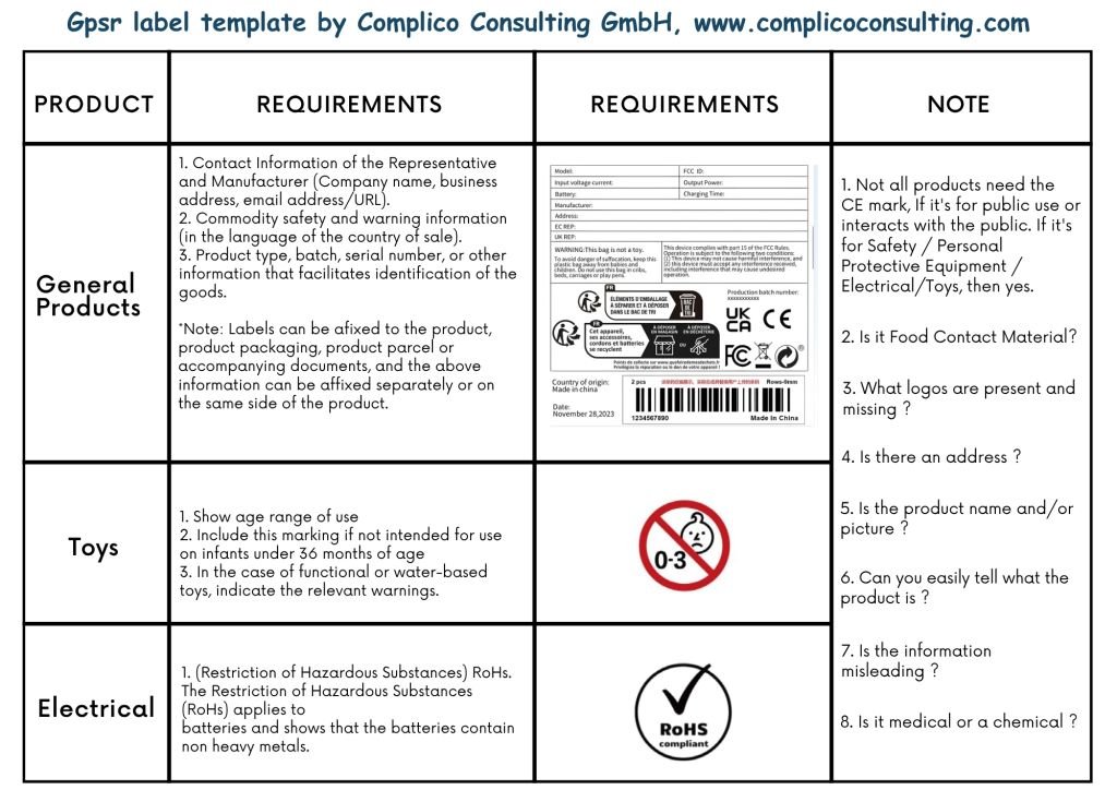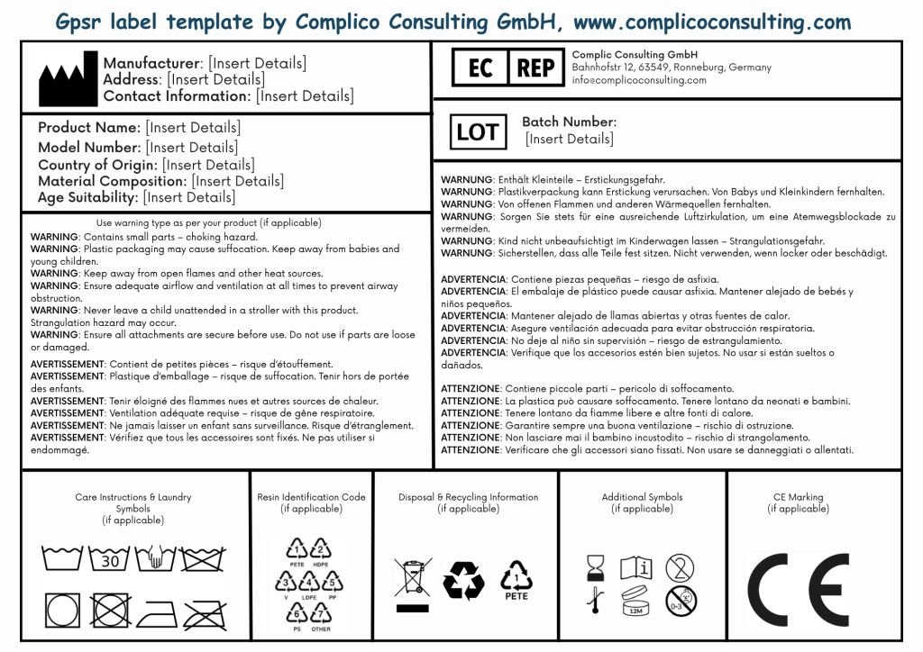 To help simplify this, we are breaking down the comprehensive GPSR Product Label template provided by Complico Consulting GmbH. Let’s explore exactly what information you need on your labels and documentation, page by page